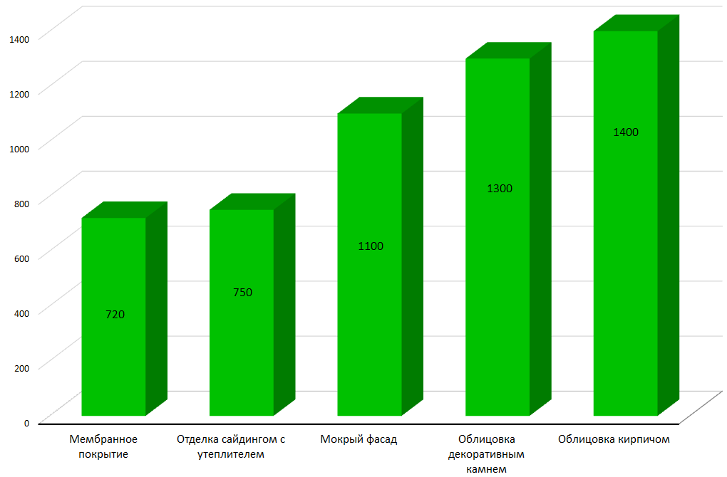 Сравнение стоимости материалов для отделки фасадов (руб.)